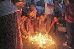 As darkness falls, hundreds of wick lamps are lit around